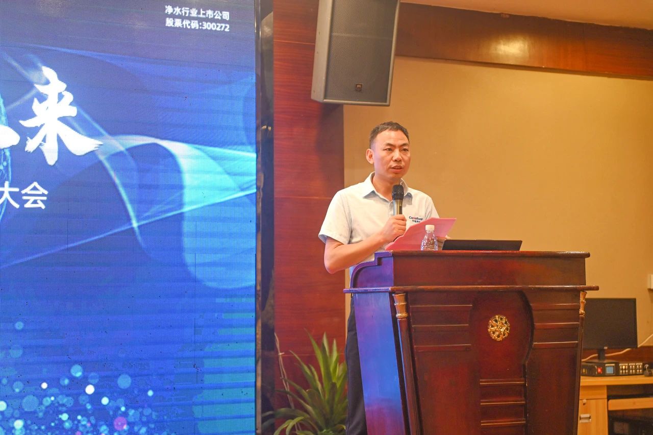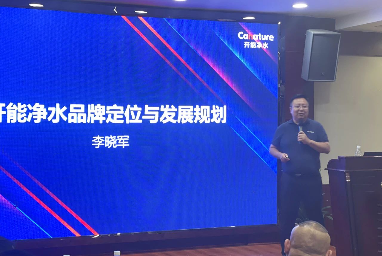 随后由开能净水产品部徐舰经理从技术、产品、应用多维度入手,展示开能净水全系列产品矩阵,不论是家用、商用还是户外等领域,开能净水都有成熟、完整的产品及水质解决方案,为经销商伙伴提供全方位、全领域、全过程的支持。