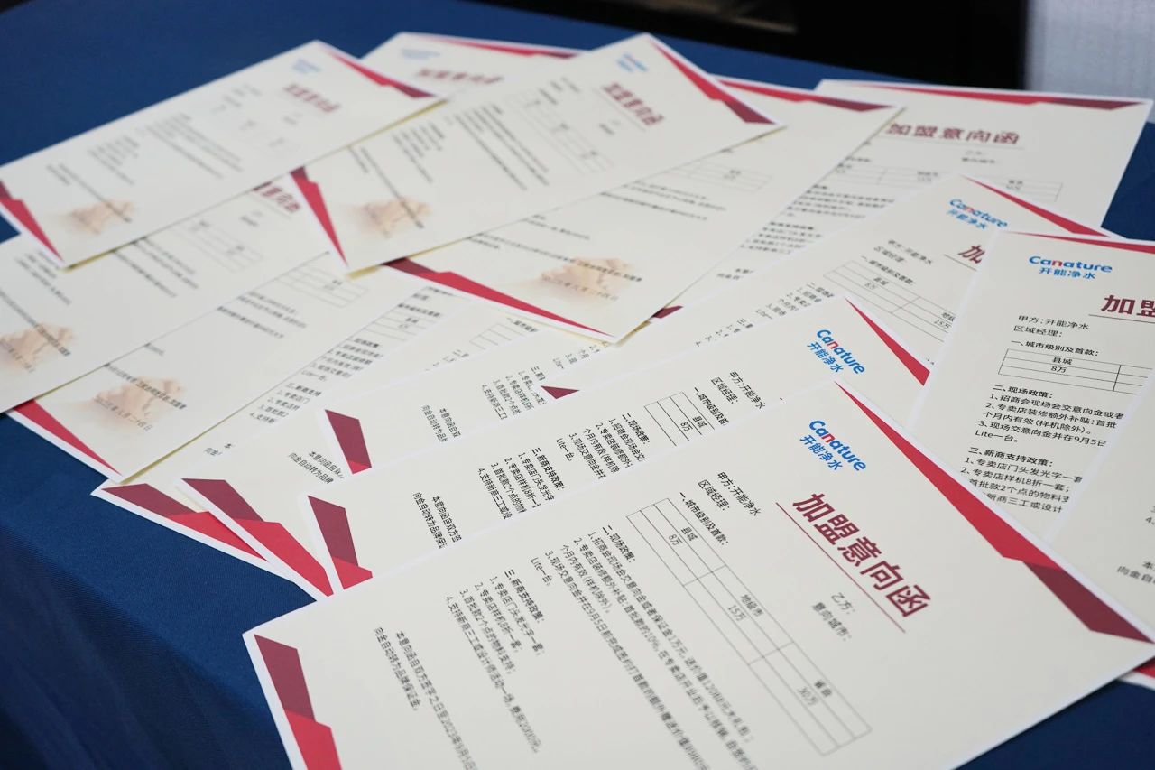 最后开能净水招商总监黄佛生先生宣布加盟政策,全场23家意向代理商进一步确定加盟意向,纷纷签订合约,现场捷报不断。最终有22家代理商现场签约,2023年度中南区选商大会湖南站圆满落幕。
