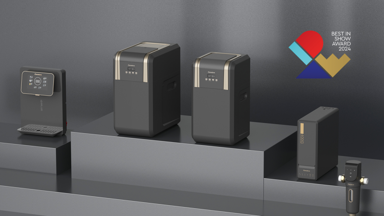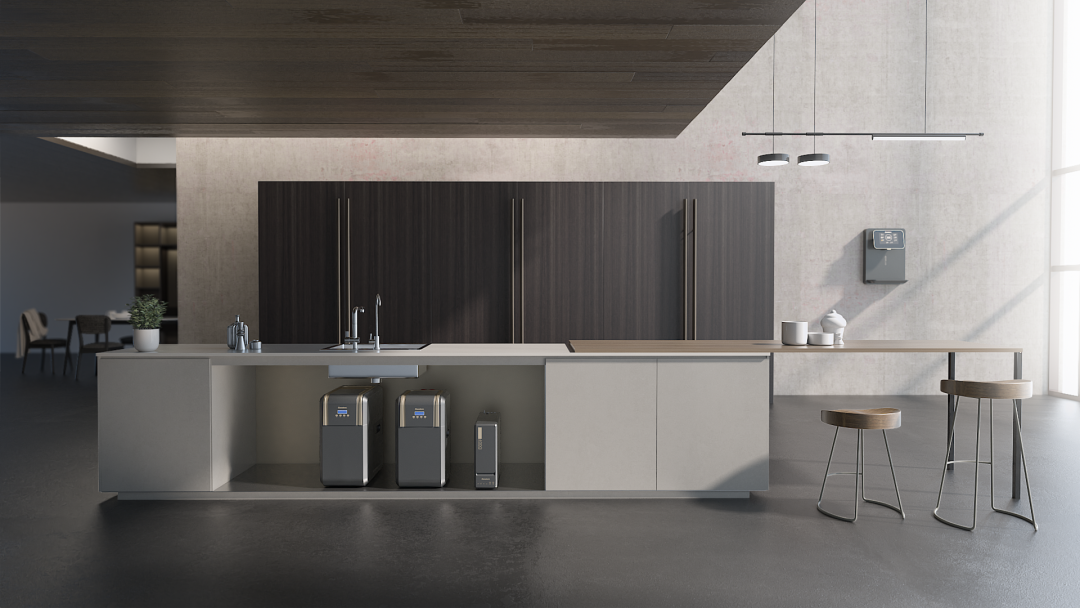 本次设计大赛开能获奖作品为黑金系列产品,主创工业设计团队秉承“黑科技、金品质”的概念,设计全系列的水处理产品。从入户开始细化家庭每一个用水场景,将家庭饮水、用水全链路做到多维净致生活体验,回应消费者对居家水环境的一站式需求。