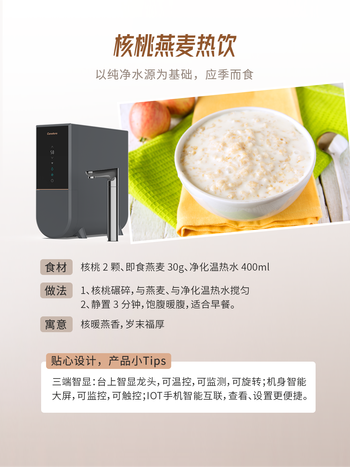 没有多余调味,只有坚果的醇香与燕麦的软糯,在纯净好水的浸润下愈发纯粹,开启元气满满的岁末时光。这份 “核暖燕香,岁末福厚” 的寓意,藏着对生活质朴的期许。