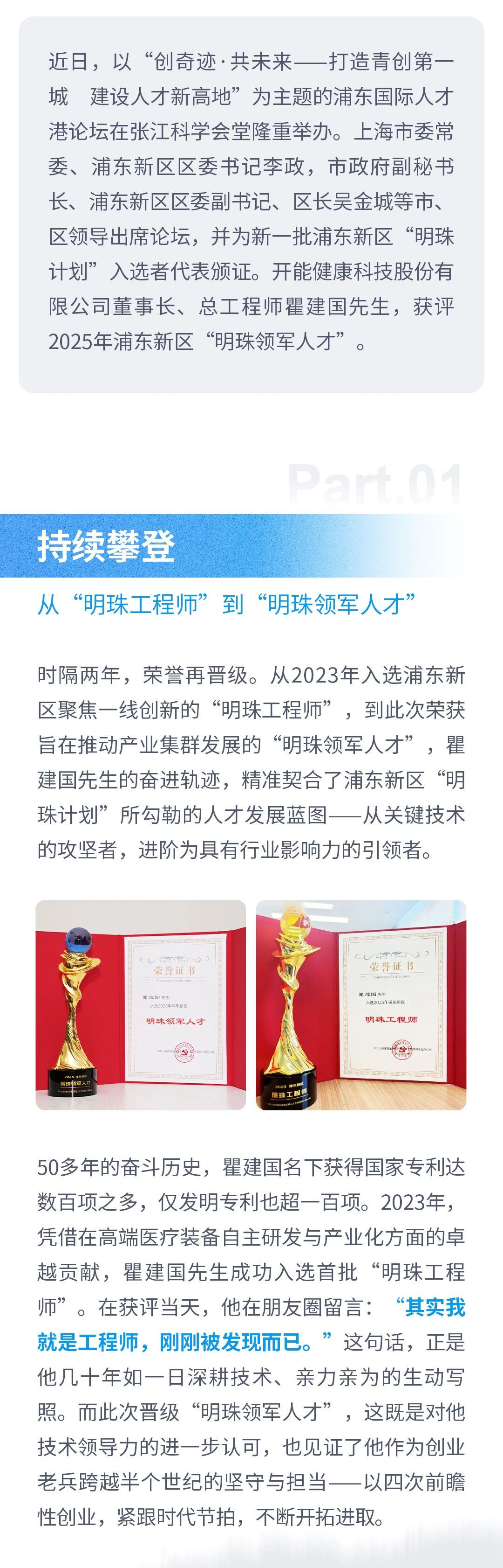 从工程师到领军人才的攀登之路 | 开能健康瞿建国董事长荣膺2025浦东新区明珠领军人才